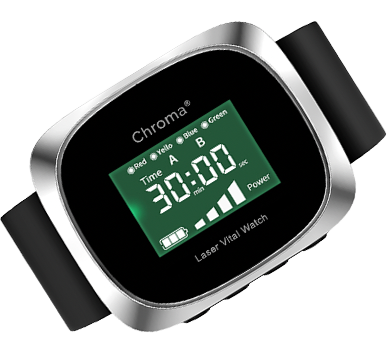 Die Chroma Watch Laser Therapie Uhr nutzt vier gezielte Lichtspektren, inspiriert vom natürlichen Sonnenlicht, um deinen Körper im Alltag zu unterstützen.
